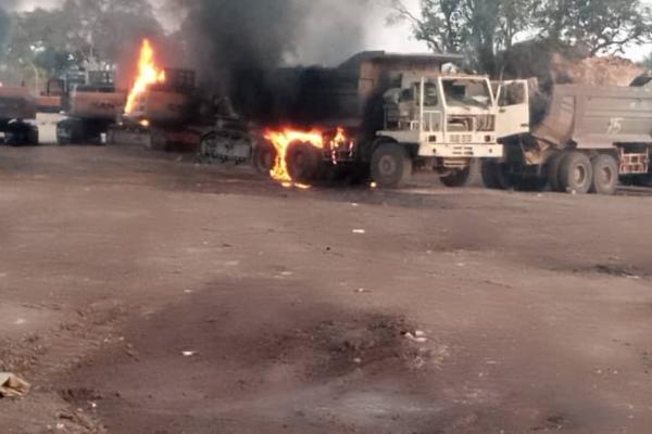 La tension aurait apparemment montée dès qu'une jeune femme a été blessée d'une balle tirée dans sa jambe lorsque ces mêmes hommes armés repoussaient les manifestants des sites qu'ils sécurisent. Les plus radicaux des manifestants s'en sont pris à des engins et camions pour les incendier et ainsi bloquer les activités sur les sites d'exploitation que certains nomment Kalakundi, Sierra ou encore MOTO POMPE.