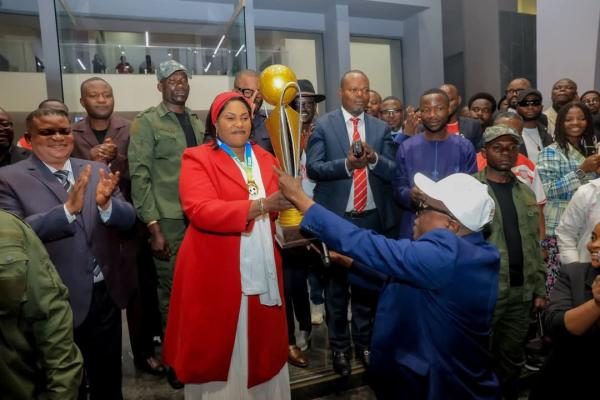 Aussitôt arrivés triomphalement, les kamikazes sont directement allés présenter leur trophée à leur présidente, Fifi Masuka Saïni, à l'esplanade de l'hôtel du gouvernement de province.