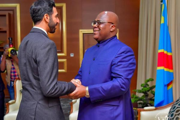 Le Président de la République démocratique du Congo, Félix Tshisekedi a échangé, ce lundi, avec Sheilk Shakhboot Nathan Al Nahyan, ministre d'État des Émirats Arabes Unis, à la tête d'une délégation venue signer un partenariat avec la société Sakima (Grand Kivu).